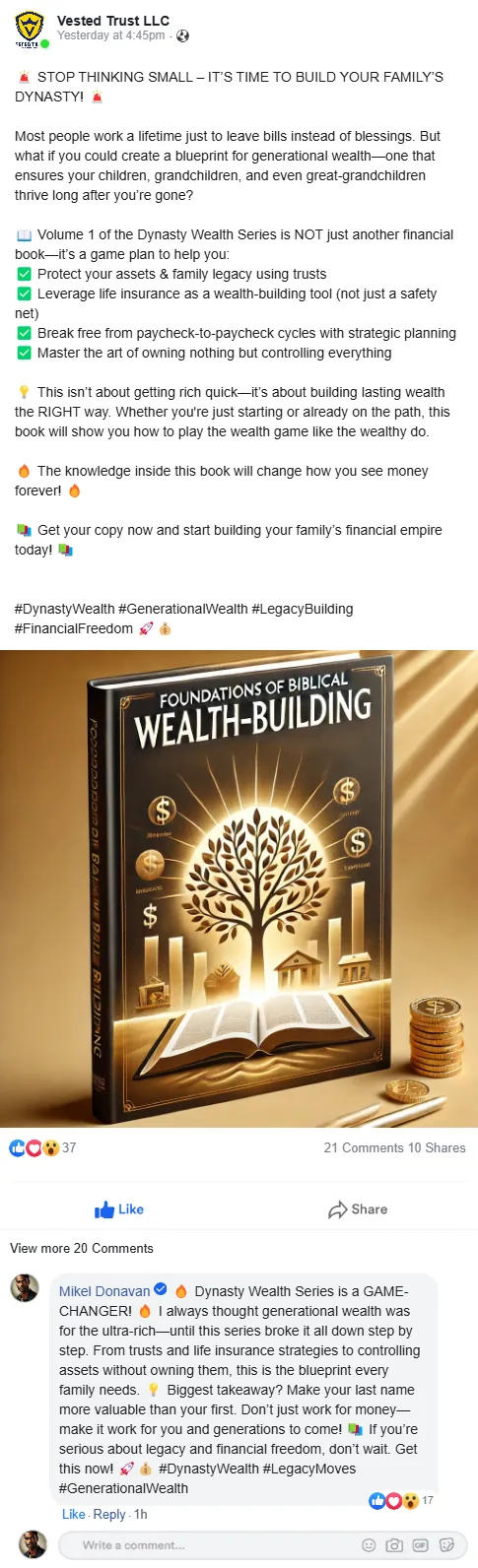 This eBook is for anyone looking to build a financial legacy, whether you’re just starting or already have assets you want to protect. If you want to use trusts, LLCs, and life insurance to create long-term wealth without relying on traditional banks or government programs, this is for you.